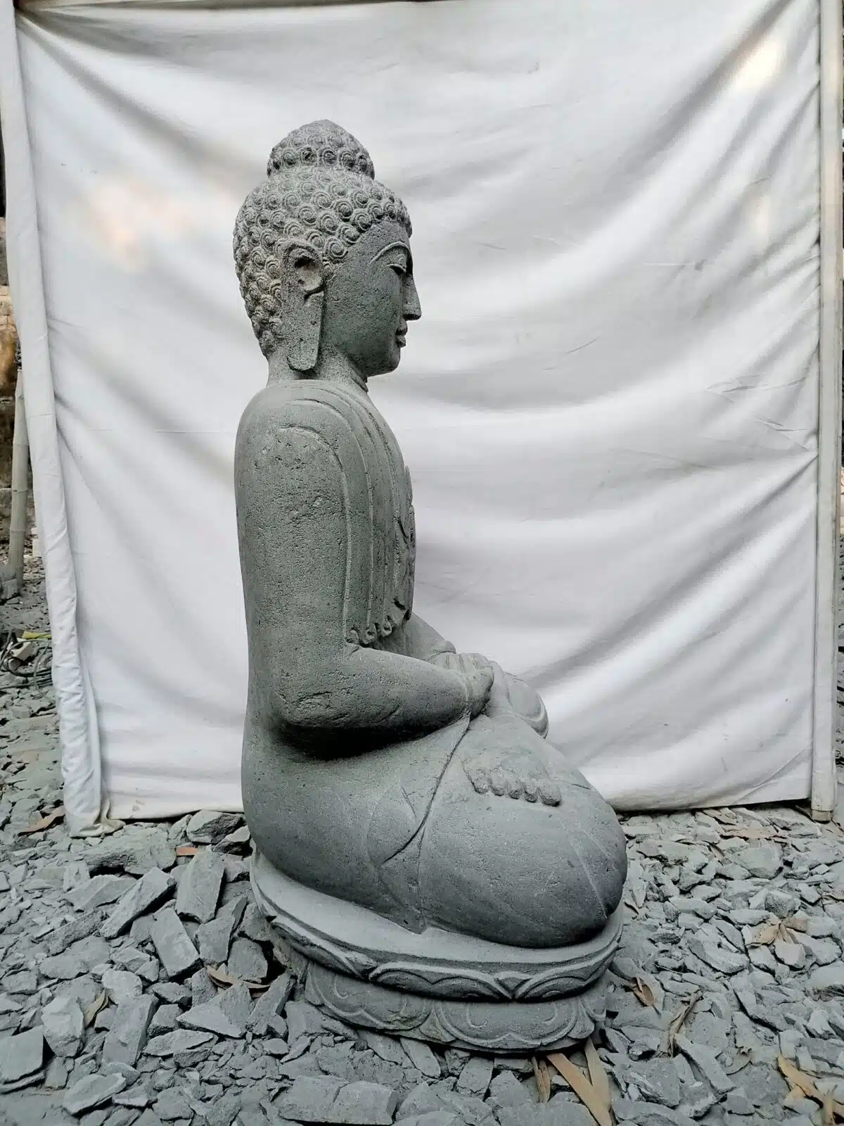 Statue bouddha assis méditation en pierre naturelle premium 105 cm